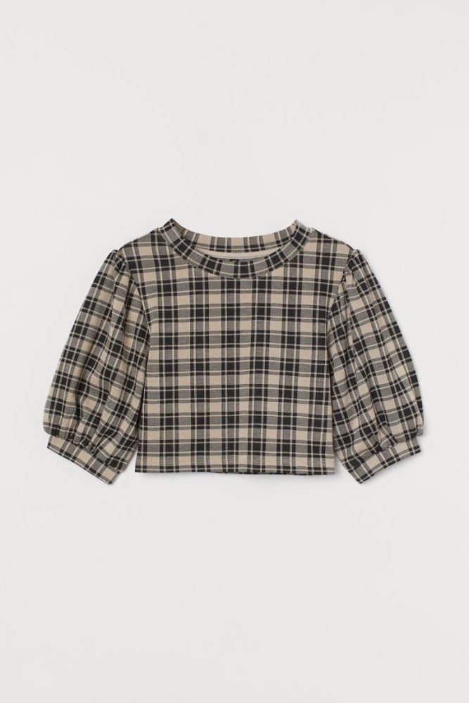 圆领泡泡短袖上衣搭配牛仔裤,营造假日休闲打扮。