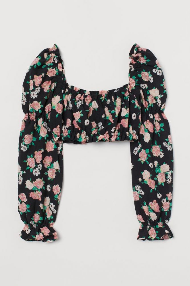 短款花卉上衣很适合练好了腹肌的女生!搭一件牛仔裤,集甜美、型格元素于一身。