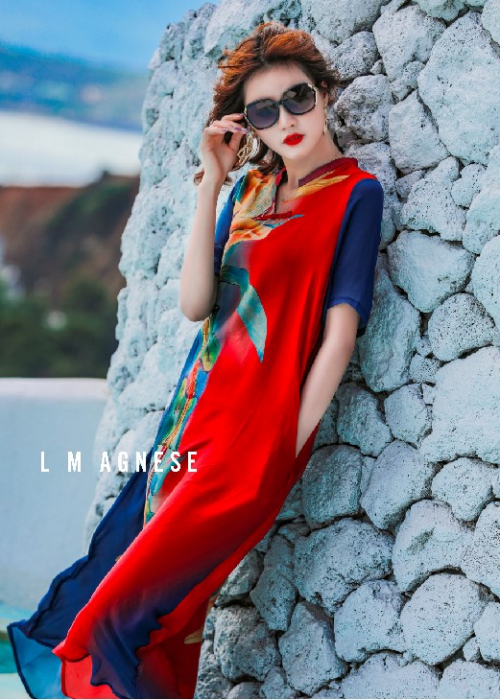 同样,简爱格妮斯这一款轻熟风的连体长裙在夏季也很受欢迎。红色热情奔放,蓝色清新冷冽,红蓝配色一直是时尚界的宠儿,众多女星也对这样的配色爱不释手,时髦且高级。从领口延伸到裙摆的印花勾勒出不一样的异域风情,这套服装就像夏日骄阳中盛开的蓝莲花朵,明媚而清新,非常适合海滨度假或者沙滩漫步时穿着。