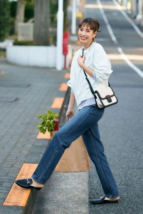 高腰牛仔裤亦是夏天不错的选择,这款牛仔裤轮廓笔直,而且不会过于宽松或过于贴身,穿起来能有效修饰腿部线条,日常休闲或上班造型都适合穿着。