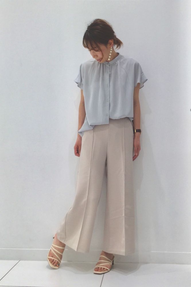 裤款采用了皱褶设计,配合笔直的轮廓和皱褶的垂直线条,能有效增强长腿的效果。加上裤款是宽松设计,配合光泽物料,穿起来较为清爽,是夏季必备的优雅裤款。
