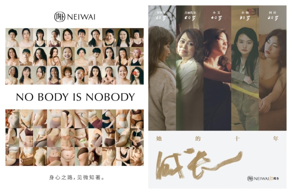 于内,伴随着「NO BODY IS NOBODY」年度品牌项目第3季「身心之路,见微知著」,NEIWAI内外正式开启品牌10周年。通过记录30位女性真实的身体和勇敢的心,品牌继续深入探索女性多元真实之美,以平等对视、真诚对话,会聚形成永恒更新中的中国当代女性群像,不断探讨并呈现女性的自我认同与集体力量。与此同时,NEIWAI内外上线纪录短片《成长》,邀请了5位分别在人生20、30、40、50、60岁阶段的品牌用户,来讲述她们过去十年的身心之路,在更细微、也更为开阔与深入的维度,叙述中国当代女性的觉醒、成长与思考之路。