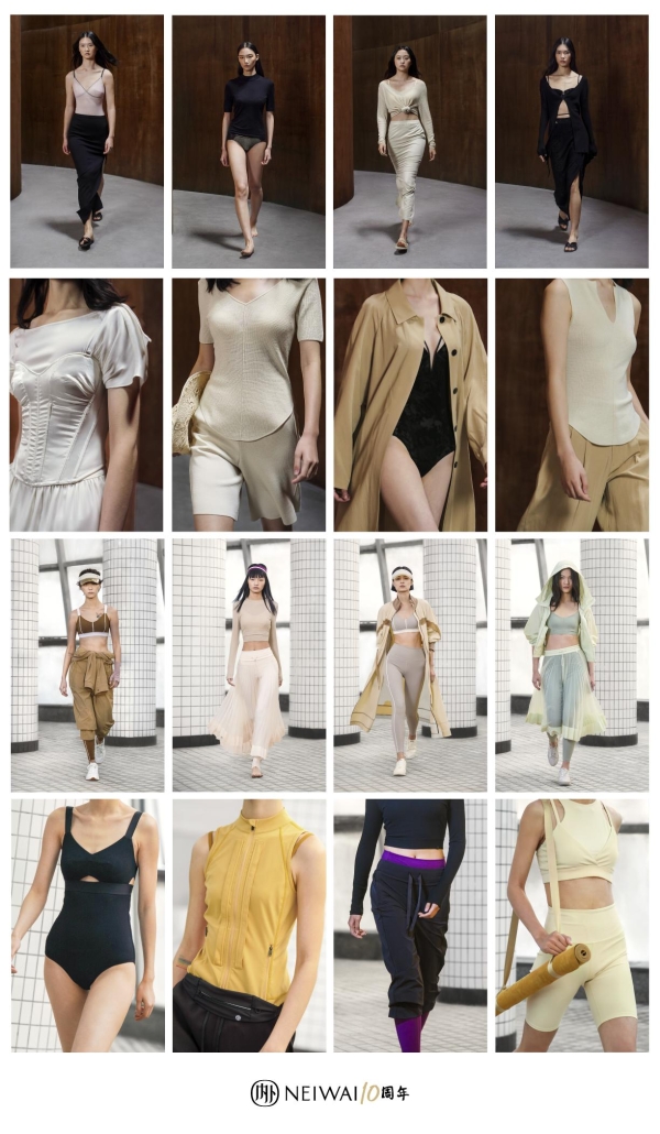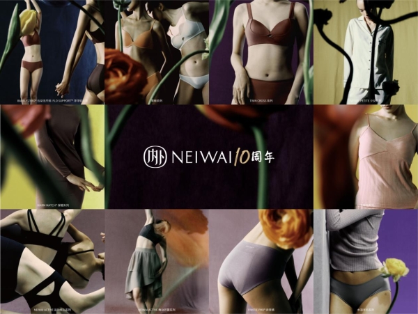2022年春夏,于品牌10周年之际,NEIWAI内外以女性视角的品牌表达,真诚呈现女性多元的身体之美与丰饶的精神力量;发布由品牌全球代言人王菲演绎的10周年品牌TVC,并首次线上发布2022春夏系列女装秀,意在探讨并重译内与外之间的关系,与中国当代女性携手抚触时间的质地,赞美女性自我的成长。