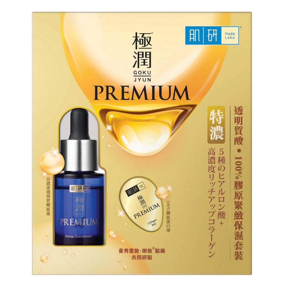 Hada Labo肌研100%胶原蛋白球每颗均新鲜封存於独立胶囊中,即开即用,有效保持肌肤弹性,同时改善干燥缺水的肌肤问题。让肌肤回复紧致,柔韧及饱满。而透明质酸原液蕴含活性多肽及5重功能性透明质酸,令轮廓重现立体感同时由内至外渗透角质层,集中改善干燥受损肤质,同时淡化干纹让肌肤水润亮泽。