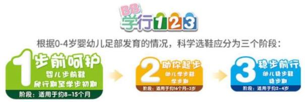 分阶段设计学步鞋做得最好的就是江博士健康鞋,其根据宝宝学步的三个不同阶段设计了“BB学步123”系列学步鞋,包括婴儿步前鞋、幼儿学步鞋和幼儿稳步鞋。这三种不同功能设计的学步鞋分别满足了爬行期至学步初期、学步期和稳步期三个阶段的不同学步需求,保护宝宝足部健康同时培养宝宝正确的步态。