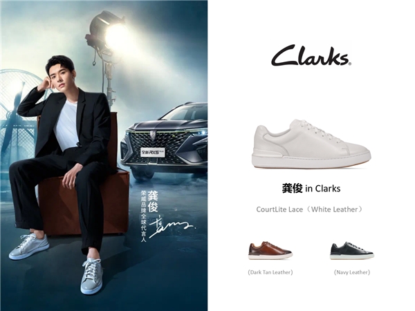 演员龚俊在最新广告大片中穿着黑色西装白色内搭,搭配Clarks CourtLite Lace系列经典白色款,黑白分明绅士有型。经典Cupsole板鞋外观设计奠定时尚简约的基调,光滑优质的牛皮革及内里提升整体质感,轻松简约更显高级。Clarks制鞋匠心藏于细节,三色选择拓展舒适型格搭配的无限可能。